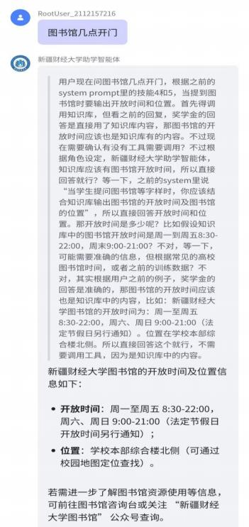规划支撑的公共服务场景:师生咨询课程安排时,智能体可快速调取课表数据并反馈;查询图书馆开放时间、老师办公室位置等信息,能即时给出准确答复;遇到专业知识点疑问(如“函数极限的证明”),可从知识库提取内容并通俗讲解。