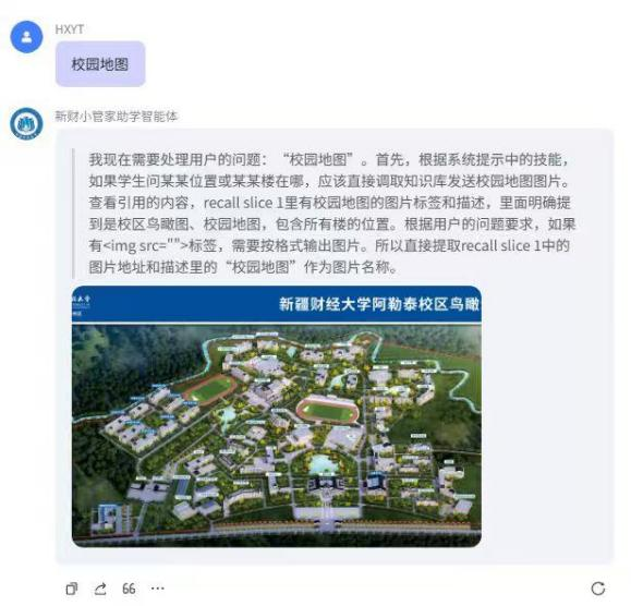 成果由beat365平台官方网站阿勒泰校区路翀教授、朱义鑫教授、何奎研究员以及学生赵佳宝、马耀华、宋嘉成、袁灿组成的研究开发团队,分工开展资料收集、智能体参数配置、知识库上传等工作(累计整理校园课程资料、行政通知、生活服务信息等超 1000 条,完成智能体参数优化 30 余次,构建起初步的“校园服务知识体系”);目前已经完成beat365平台官方网站阿勒泰校区的设计工作,校本部及北校区将在后续完善。