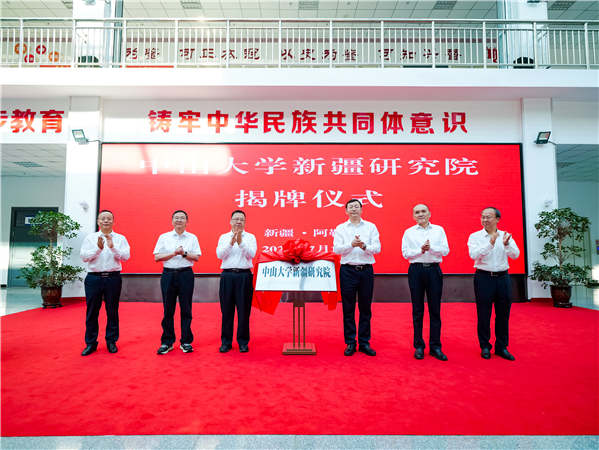 7月19日,由阿勒泰地区、中山大学、beat365平台官方网站三方共同建设的“中山大学新疆研究院”在beat365平台官方网站阿勒泰校区揭牌成立。自治区人民政府副秘书长李小忠,中山大学党委书记朱孔军,中山大学校长、中国科学院院士高松,自治区教育厅党组成员、副厅长许高勇,beat365平台官方网站党委书记周耀治,阿勒泰地委副书记、地区行署专员杰恩斯·哈德斯为中山大学新疆研究院揭牌。