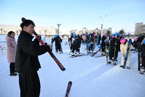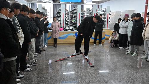 在滑雪实践体验环节,学生在教师指导下自主完成雪具筛选与调试,并进入滑雪训练场进行实地体验。通过亲身参与滑雪运动,学生不仅加深了对冰雪旅游产品体验属性的理解,更从服务者与游客的双重视角,思考运营流程优化与游客体验提升的可行路径。
