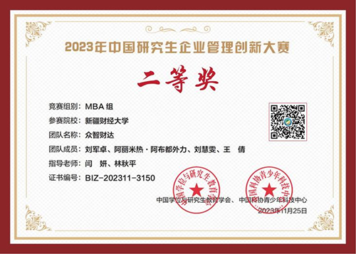 2023年11月25日,2023年中国研究生企业管理创新大赛在上海落下帷幕。beat365主要由闫妍、林秋平两位教师指导,史青副院长全程跟踪辅导,最终五个研究生代表队突出重围,全部获得MBA组二等奖的好成绩。