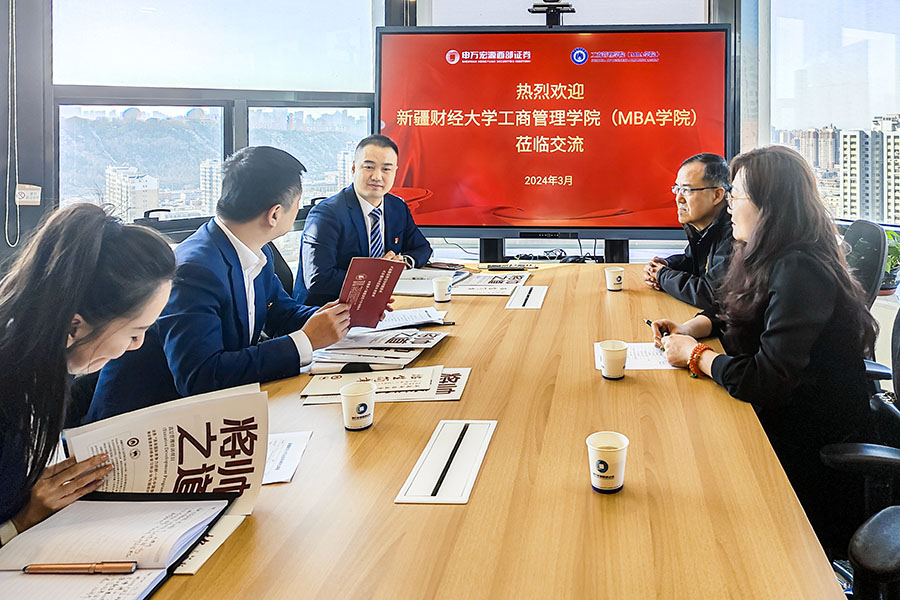 在当前经济全球化和市场竞争日益激烈的背景下,校企合作成为高等教育与企业发展的双赢策略。3月19日,beat365平台官方网站工商管理学院(MBA学院)MBA教育中心主任李潇潇、营销与商务分析系主任李霞、MBA教育中心吐尔逊·艾力老师一行前往申万宏源西部证券有限公司总部调研,就深化校企合作关系、共建实习基地、企业中高层管理人员培训等议题进行了深入交流。