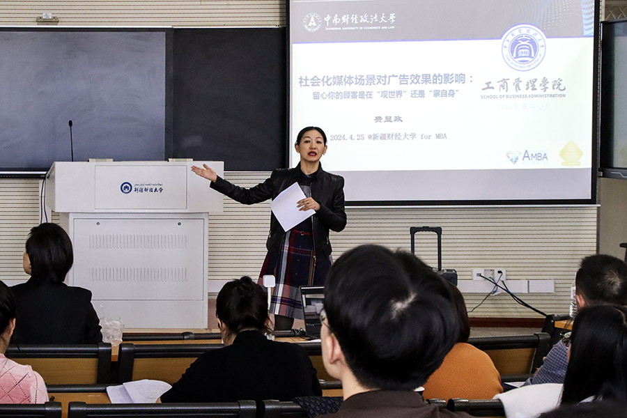 4月25日,中南财经政法大学工商管理学院副院长、博士生导师费显政教授,应邀以《社会化媒体场景对广告效果的影响:留心你的顾客是在“观世界”还是“察自身”》为题作学术报告,我院MBA学生130余人参加报告会,副院长史青教授主持报告会。