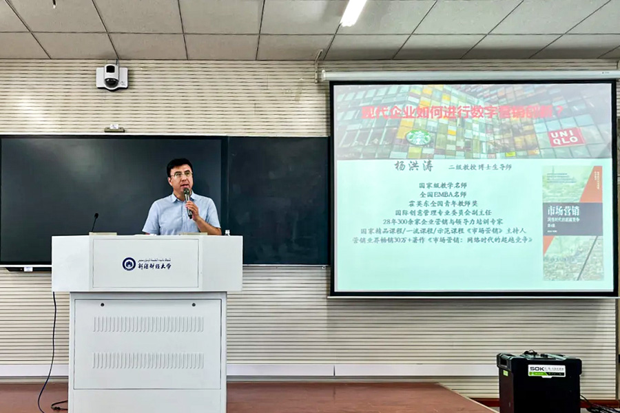 6月6日,我院邀请教育部市场营销课程教学虚拟教研室主持人、华侨大学二级教授杨洪涛以《现代企业如何进行数字营销创新》为主题,为我院师生开展了一次精彩的学术报告。报告会由副院长史青教授主持,学院教师及MBA专业学生100余人参加。