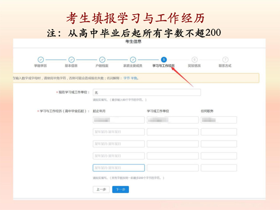 填报学习与工作经历