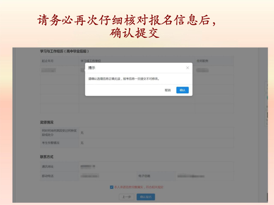 仔细核对报名学习,确认提交