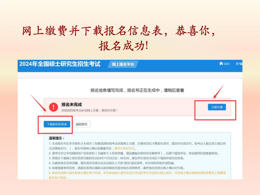 网上缴费成功并下载报名信息表