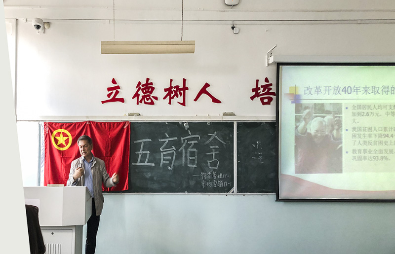 尔肯副院长首先提出了改革开放40周年我们国家的众多变化,从各个大数据材料和图片向我们展示了国家突飞猛进的发展飞跃。解读了习近平总书记在十九大报告上说的两个作为:“为中国人民谋幸福”和“为中华民族谋复兴”,而这两个“作为”围绕着初心开始展开,说到了筑梦新时代我们广大青年学生要具备四个不忘的初心,要有“扶贫梦”“发展梦”“法治梦”“和谐梦”。