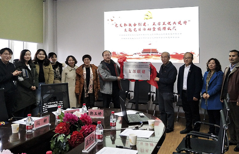 双方学院的领导共同为联合创建支部揭牌