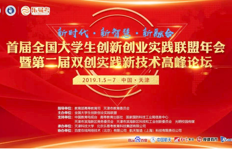 2019年1月6日,首届全国大学生创新创业实践联盟年会暨第二届双创实践新技术高峰论坛在天津隆重召开。大会主题为“新时代、新智慧、新融合”,旨在联合成员单位,共同探索双创实践教育体系,服务国家创新发展战略。