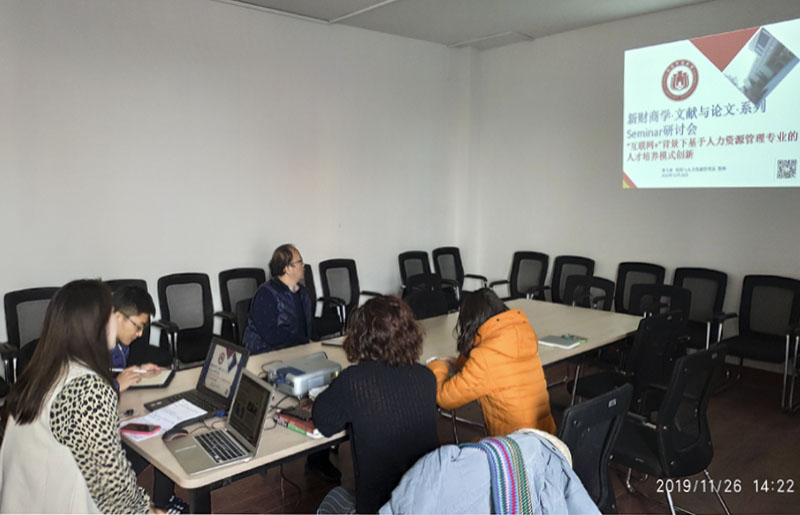 11月26日,学院2019年第8期新财商学·文献与论文·系列Seminar研讨会,在至善楼4楼学院多功能学术研讨室举行。组织与人力资源管理系郭玉娇博士以“互联网+背景下基于人力资源管理专业的人才培养模式创新”为题作了研究分享,副院长尔肯副教授主持研讨,学院在校教师参会。