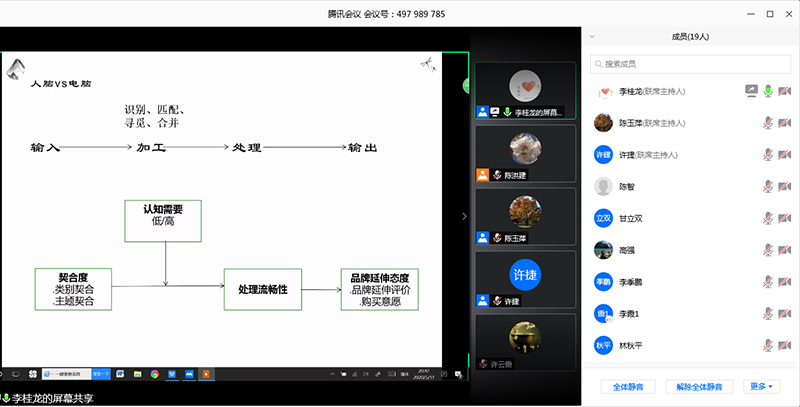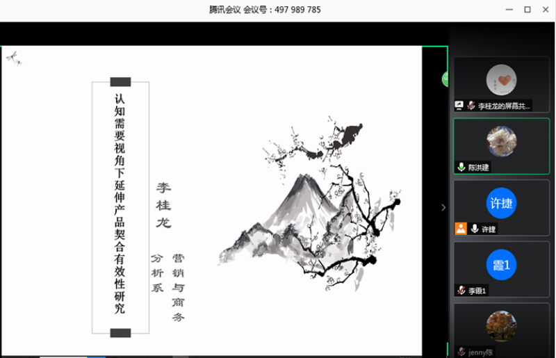 5月11日,2020年第2期新财上学·文献与论文系列Seminar研讨会在腾讯会议在线网络会议室举行。商务分析系青年教师李桂龙以“认知需要视角下延伸产品契合有效性研究”为题作了科研分享,院长助理许捷主持并作点评。院长陈玉萍教授、副院长张晟义教授等18名老师参会并作点评。