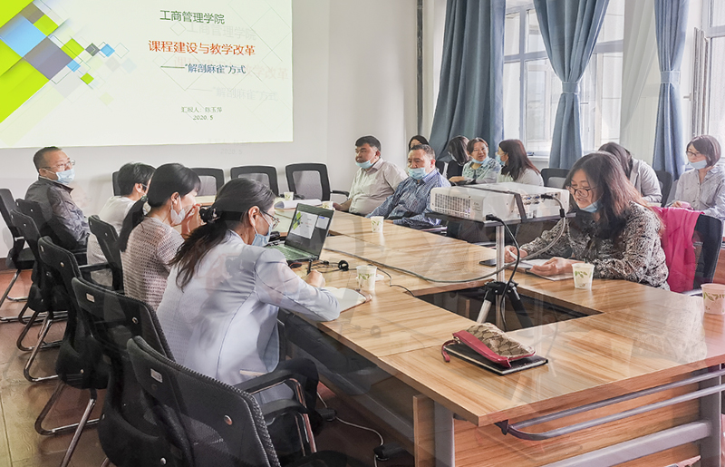 会上,学院院长陈玉萍教授以《课程建设和教学改革——解剖麻雀方式》为题,从编制教学大纲的意义和编制原则切入,汇报了学院课程教学大纲修订的思路,并以《管理学》课程为例,介绍了学院课程教学设计、思政要素融入、学生学习考核等规范做法,展示了《战略管理》《供应链管理》《人力资源管理》《市场营销学》四门“解剖麻雀”试点课程的课程建设材料。本学期,结合线上教学及课程混合教学资源建设情况,学院各课程团队对现有教学资源进行了深度“解剖”。在教学目标中强化了课程“思政育人”德育目标;在教学内容中融入了中国化研究成果和思政元素;在教学理念中进一步强化了“以学生为本”、“教与学互动”、“创新与实践”;在教学方法中深化混合教学和翻转课堂;在教学评价中加强了过程和能力考核;在教学资源建设中整合了线上线下资源,加强新疆本地企业案例资源、情景化教学资源和思政案例资源建设。以期全方位提升学生的学习能力,推动教师以研促教,助力学校内涵式发展。