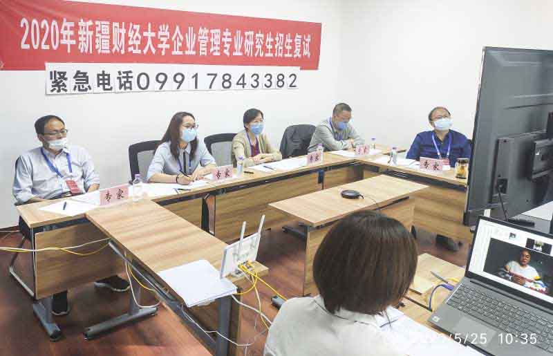 复试过程中,学院提前对考场进行消毒,所有面试考官上交手机,进场前测温,并签署专家承诺书,学院领导进行考前培训,并提出纪律要求。面试过程中,采用“双机位”方式全程录像监控,考生通过网络在云端与面试专家见面,面试专家对考生的英语口语能力、思想政治素质与品德、综合素质能力和专业能力进行了考核。整个面试过程应急保障组全程跟进,及时解决面试中出现的技术问题,使面试过程有条不紊,经过两天半的努力,至此2020年工商管理学院研究生招生复试工作圆满结束。