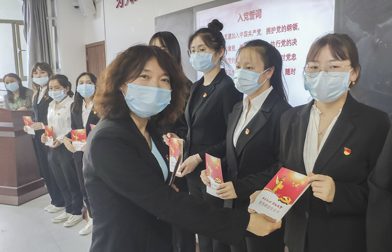 党委副书记、纪委书记梁艳为学生党员颁发“政治生日”贺卡