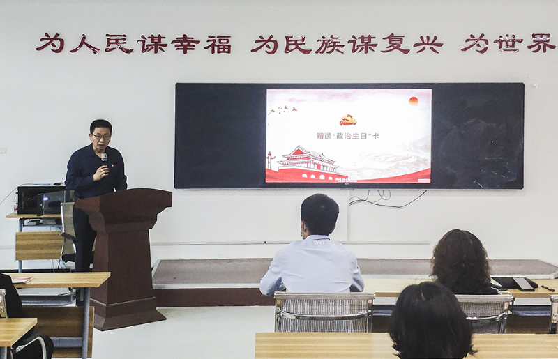6月21日,工商管理学院于经世楼1202教室举办了“过政治生日,不忘入党初心”主题党日活动。学院党委书记施勇纲、党委副书记梁艳、学生第一党支部书记郭江、学生第三党支部书记赵磊等老师、我院全体学生党员参加了活动,组织员加孜拉老师主持主题党日活动。