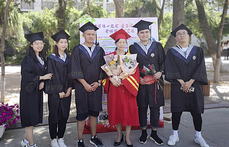 院长陈玉萍与部分参加毕业典礼的毕业生合影