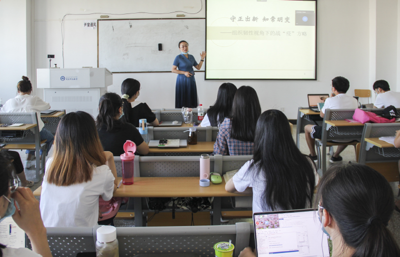 7月24日,创新与战略管理系教授、教务处副处长王海芳王海芳博士以“守正出新,知常明变——组织韧性视角下的战“疫”方略”为题,在7号教学楼7730教室与腾讯会议同步作了学术讲座,企业管理专业研究生与部分老师聆听了讲座。