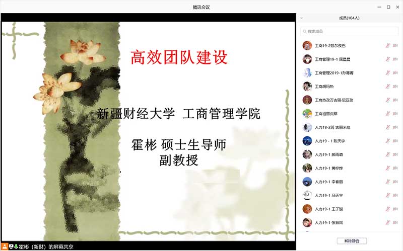 8月6日,学院第25期学术讲座在腾讯会议平台举办,创新与战略管理系主任、硕士生导师、副教授霍彬老师作了题为《高效团队建设》的学术讲座,我院工商管理和人力资源管理专业19级100余名学生与部分教师聆听了讲座。