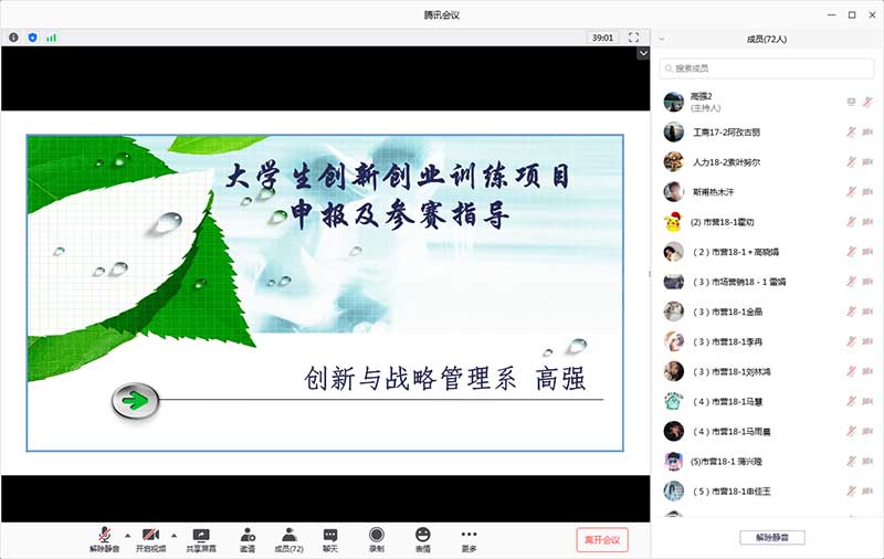 8月7日上午,我院创新与战略管理系教师高强博士通过腾讯会议平台为工商管理学院学生作了题为《大学生创新创业训练项目申报与参赛指导》的讲座。工商管理学院100余名学生聆听了此次讲座。
