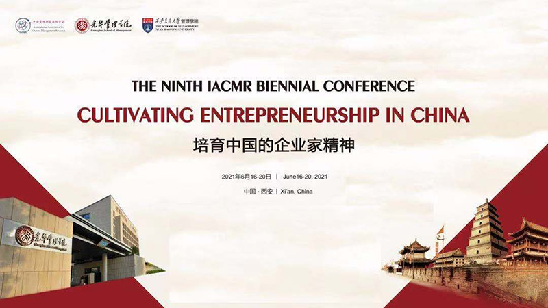 2021年6月17日至20日,第九届中国管理研究国际学会(IACMR)双年会在线上举办。本届国际会议主题为“培育中国的企业家精神”,由北京大学光华管理学院、西安交通大学管理学院承办。由于国内疫情防控需要,本届国际会议由2020年延期至2021年举行,并由原定的线上、线下混合模式改为全面线上的模式。