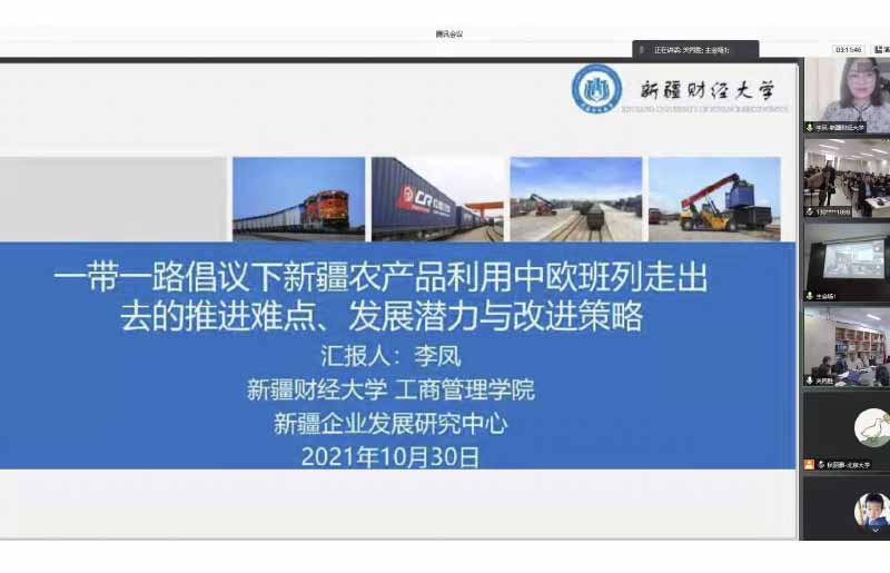 李长青老师使用了2010-2020年“一带一路”国家的面板数据,利用空间计量模型研究了这些国家对华贸易的“同群效应”。李凤老师系统梳理了新疆农产品利用中欧班列走出去的推进难点,通过预测发展潜力,提出符合中国与亚欧区域国家农业合作特点和实际情况的政策建议。两位老师的分享交流得到与会专家的肯定与点评。
