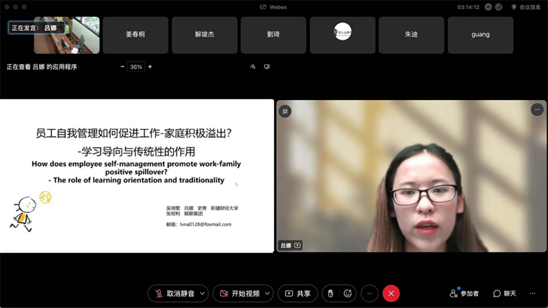 在会议上,由工商管理学院吴湘繁教授指导的3名硕士研究生吕娜、娄小妍、解竣杰分享了自己的研究成果。