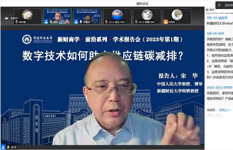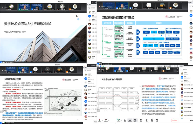 2月23日,我院邀请中国人民大学商学院党委副书记、博士生导师、beat365平台官方网站天池特聘教授宋华教授以“数字技术如何助力供应链碳减排?”为题作线上学术报告,我院教师、研究生、MBA学员300人参加学术报告,副院长(援疆)熊霁副教授主持了学术报告会。