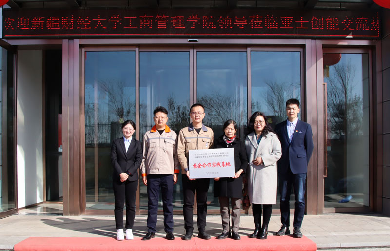 2023年3月10日,工商管理学院(MBA学院)院长陈玉萍带队赴亚士创能科技(乌鲁木齐)有限公司开展访企拓岗、校企合作实践基地签约活动。亚士创能科技新疆供应大区总监兼总厂长杨志强、副厂长谢文飞、厂办副主任丁娟彤与陈玉萍院长及学院MBA教育中心主任李潇潇、分团委副书记赵磊等共同出席签约挂牌仪式。