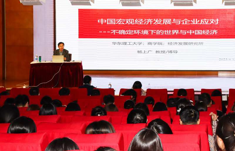 14日下午,杨上广教授在知行楼5号会议室做了题为《中国宏观经济发展及企业应对》的报告,我院全体教师、研究生、MBA学员及外院师生参加报告会,工商管理学院(MBA学院)院长王海芳教授主持报告会。