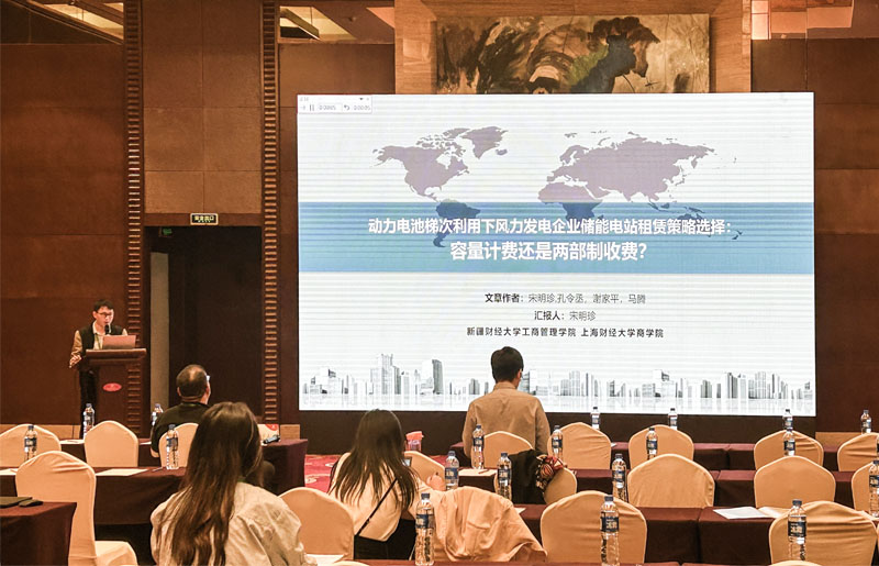 本次会议设置主旨报告和分论坛报告两个环节。主旨报告环节邀请了包括浙江大学华中生教授在内的六位该领域知名学者汇报最新研究成果。谢家平教授担任主旨报告四的主持人。共设置碳中和与供应链管理、制造业低碳化、绿色供应链、平台供应链与闭环供应链等十四个分论坛,邀请遴选出的近170篇优秀论文作者在分论坛进行汇报。张晟义副院长担任闭环供应链分论坛的点评人。宋明珍老师在绿色能源管理分论坛作了题为《动力电池梯次利用下风力发电企业储能电站租赁策略选择:容量计费还是两部制收费?》的报告,张广思老师在平台供应链分论坛作了题为《科创平台的政府补贴策略分析:如何同时兼顾社会福利和平台利润?》的报告。