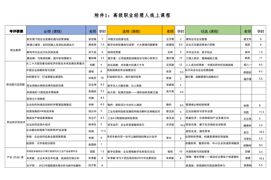 附件1:高级职业经理人线上课程