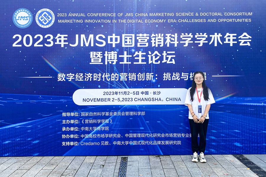 11月2日至5日,第二十届(2023)JMS中国营销科学学术年会暨博士生论坛(以下简称年会)在长沙举行,年会由《营销科学学报》主办,中南大学商学院承办,国家自然科学基金委员会管理科学部支持。年会主题是“数字经济时代的营销创新:机遇与挑战”。年会邀请了国内外营销学界及相关学科的知名学者与会,旨在基于数字经济时代的大背景,结合国内外最新发展动态开展相关理论探讨和实践分享。我院营销与商务分析系盛慧老师参加了年会。