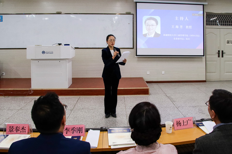 李季刚致辞,代表学校党委对各位专家的莅临表示热烈的欢迎和衷心的感谢。李季刚介绍了学校近年的发展状况,强调了数字化、创新、新商科对学科建设尤其工商管理学科建设的重要性,鼓励各位老师积极探索,不断学习,为商科教育数字化的高质量发展贡献智慧和力量。