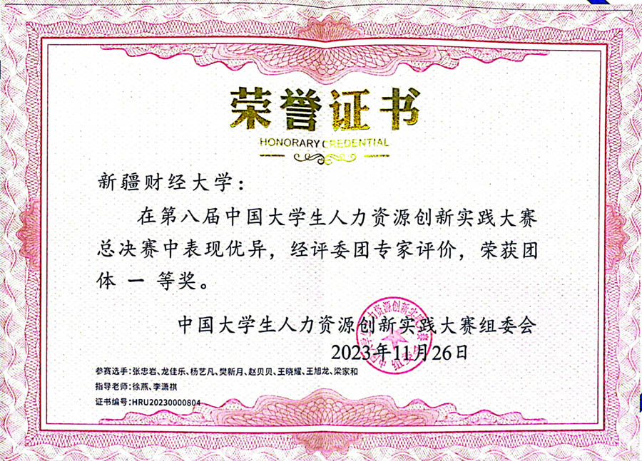 本次比赛共分为7个赛道,共有来自全国6个赛区的61所高校600余位选手挺进全国总决赛。经过三天激烈比拼,beat365选手在比赛中展现出了扎实的专业知识和良好的精神风貌,人力资源管理2020-1班梁家和同学获得“职场实战”赛道一等奖,人力资源管理2020-1班赵贝贝同学获得“无领导小组讨论”赛道一等奖,国际商务2020-1班王旭龙同学获得“案例分析”赛道一等奖,人力资源管理2021-1班王晓耀同学获得“劳动争议处理”赛道一等奖,人力资源管理2020-1班杨艺凡同学和人力资源管理2020-1班樊新月同学获得“实务设计”赛道二等奖,行政管理2021-3班张忠岩同学和工商管理2021-1班龙佳乐同学获得“数字HR”赛道二等奖,行政管理2021-3班张忠岩同学获得“HR英语”赛道二等奖。