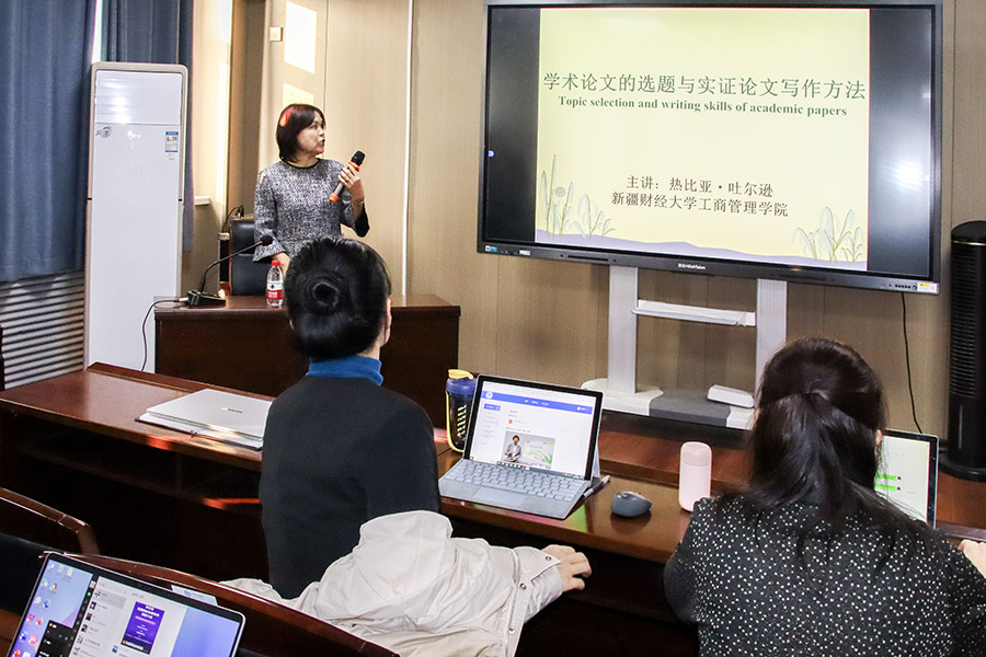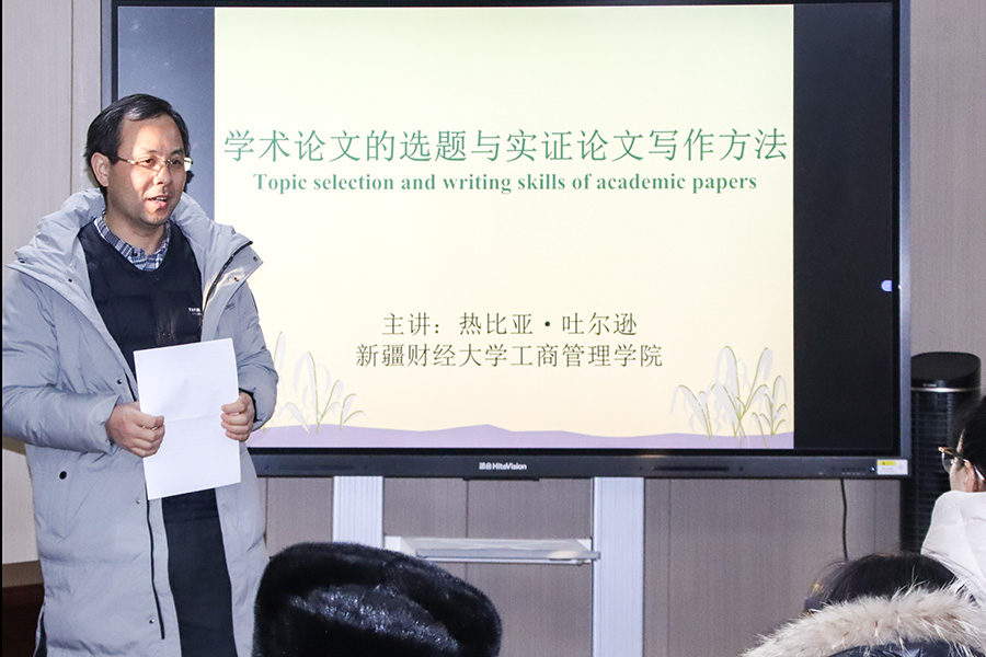 12月20日,创新与战略管理系副教授热比亚·吐尔逊博士在至善楼2427会议室以“学术论文的选题与实证论文写作方法”为题作了一场学术讲座,副院长赵纯祥教授主持了讲座,我院全体教师参加了讲座。