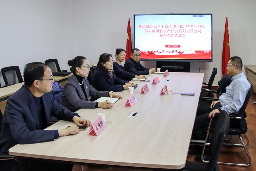 3月15日,新疆生产建设兵团第六师国有资产经营有限责任公司党委副书记段睿丰莅临beat365平台官方网站工商管理学院(MBA学院),我院陈玉萍书记、王海芳院长、史青副院长、李季鹏教授、吐尔逊·艾力老师等与段睿丰开展了关于校企合作的洽谈。