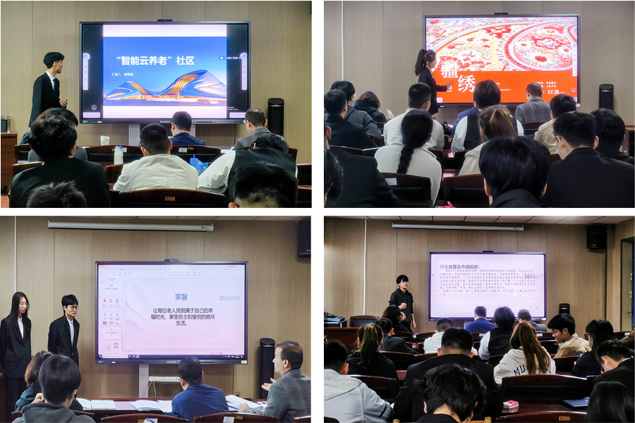 经过前期的动员,全院六十多个项目报名参加比赛,经过专家初步筛选,共有二十四个项目进入院赛,院赛采用路演答辩的方式,由项目组代表介绍项目,评委老师提问,并提出优化项目的建议。比赛邀请了阿布力孜·布力布力、杨振兴和陈妍老师作为评委老师,老师们结合当下热点、基于市场痛点,从挖掘需求、构建商业模式、撰写商业计划书、答辩技巧等方面提出了改进建议。