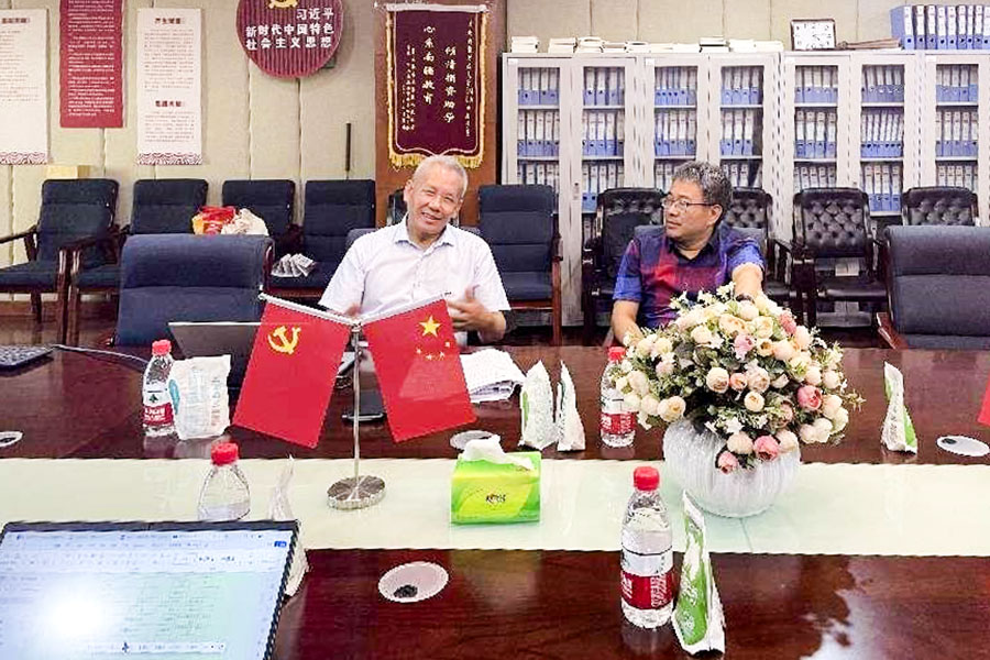 刘志学教授(左)、谢家平教授(右)在论证会现场