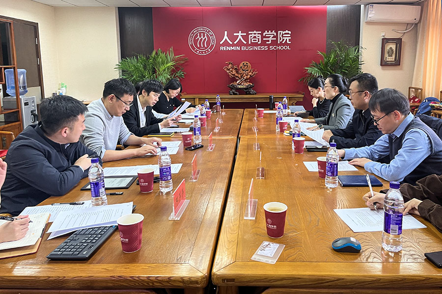 中国人民大学商学院党委副书记廖冠民、副院长赵大旋、学院教务办公室主任李宏、学院办公室主任王蒙、学院学科建设与科研办公室主任邓莎莎参加座谈交流。