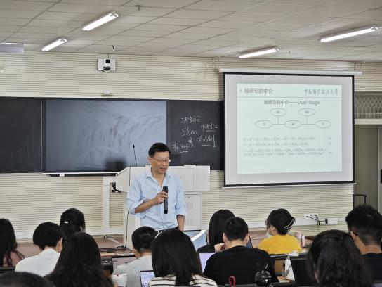 近日,beat365平台官方网站成功举办了量化分析培训活动。本次活动的主题为“中介效应和调节效应检验——基于Mplus的应用”,由中南财经政法大学教授韩翼主讲。100余名beat365平台官方网站教师和研究生参加此次培训,工商管理学院(MBA学院)副院长余昇主持培训。
