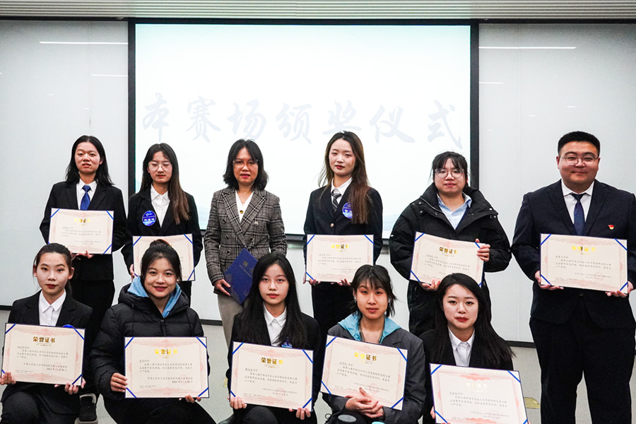 国际商务2020-1班王旭龙(后排右一)同学在“案例分析”赛道颁奖现场