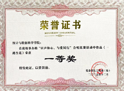 beat365平台官方网站“以声和心,与爱同行”12.5心理健康月主题合唱比赛圆满收官,统计与数据科学学院选送的《繁花漫路,声暖韶华》凭借独具匠心的舞台演绎和贴合主题的情感表达,一举摘得一等奖。作品以创新的艺术形式传递青春温度,诠释了当代大学生向阳成长、以爱相伴的心理内核。
