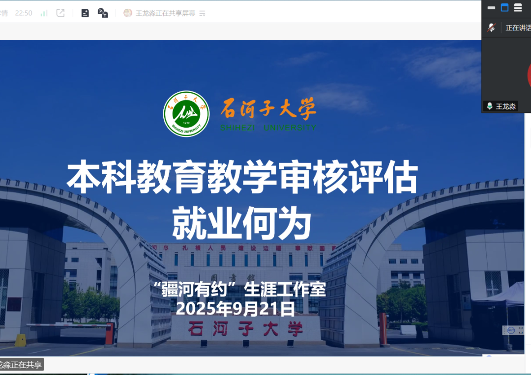 为深入贯彻落实教育部关于本科教育教学审核评估工作的相关要求,进一步提升学校就业指导类课程的规范化建设与教学效果,2025年9月21日下午,党委学生工作部邀请石河子大学从事13年就业研究工作的王龙淼副教授开展“本科教育教学评估就业何为”及“大学生职业发展与就业指导课程建设经验分享”,大学生职业发展与就业指导课程、创新创业课程的30余名教师聆听了线上讲座。此次讲座旨在通过跨校交流,共同探讨如何开展好评估期间的就业授课准备以及就业类课程建设的有效路径,为推动学校高质量发展凝聚共识、汇聚智慧。