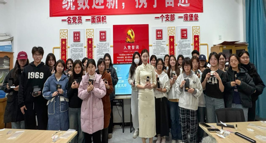 一缕螺钿,延续商周遗韵;一心专注,守护文化根脉。为丰富“一站式”学生社区文化生活,让非遗工艺走进学子“家门口”,11月7日,文汇社区精心策划的“文汇雅韵,指尖非遗”系列活动首期 ——“千年螺钿,簪戴风华” 在12号公寓426活动室温情启幕。以沉浸式非遗体验的方式为社区学子开启一场跨越千年的工艺对话。活动以螺钿发簪为载体,融合传统技艺与青春视角,通过手把手手工实践引导青年学子感受千年工艺温度,培育劳动精神与文化认同,是高校一站式学生社区深化文化育人、丰富学子生活的生动实践。